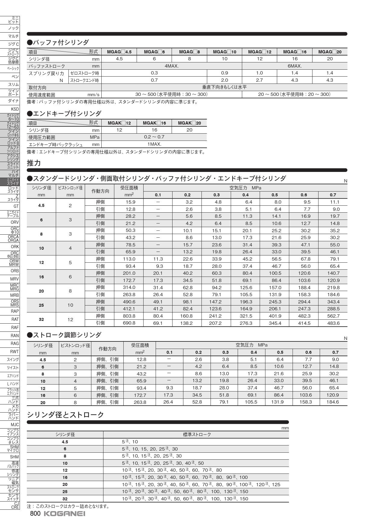 ミニガイドスライダ,側面取付,バッファ付,複動形