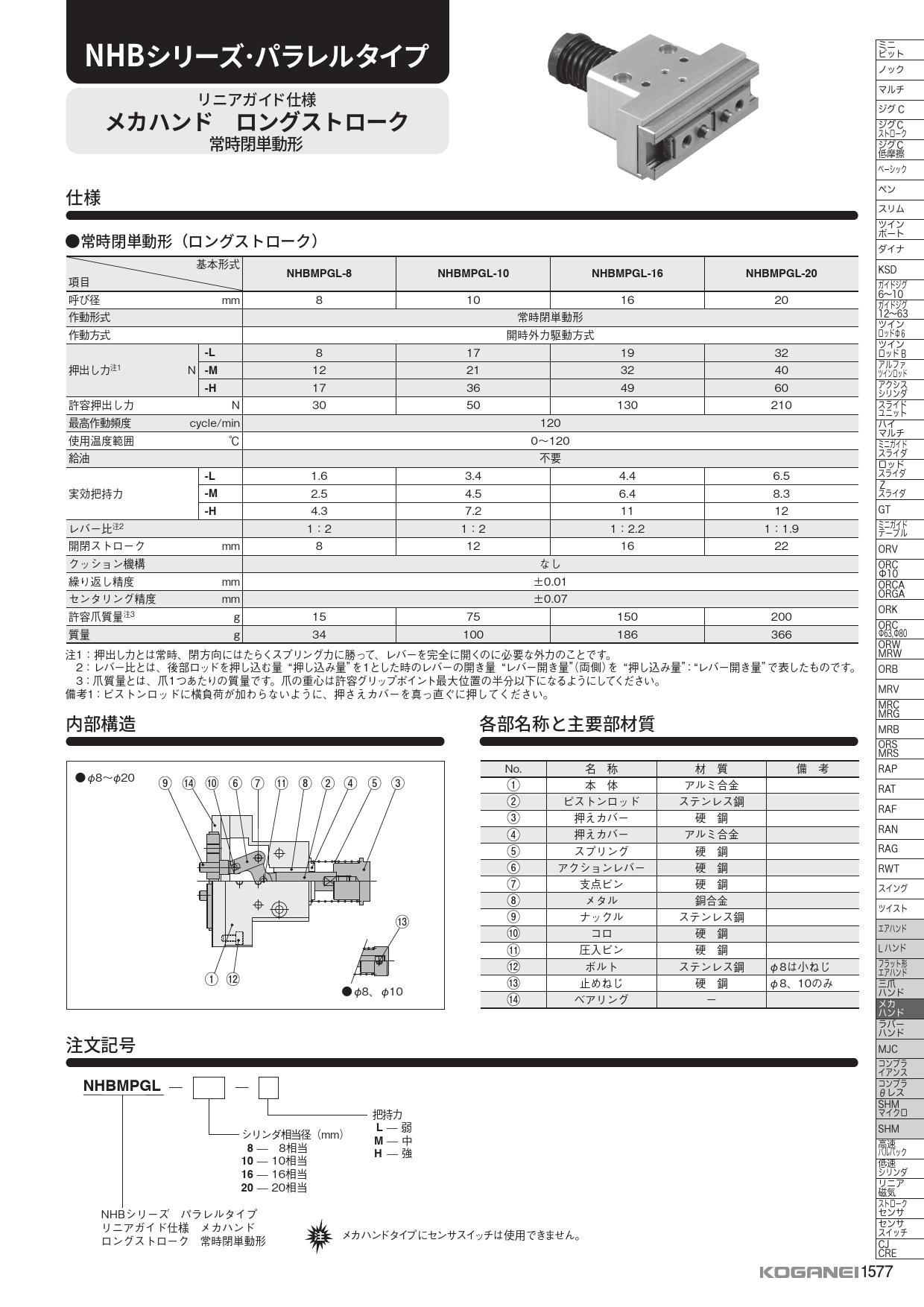 ロングストロークメカハンド,NHBMPGL,チャック,ハンド