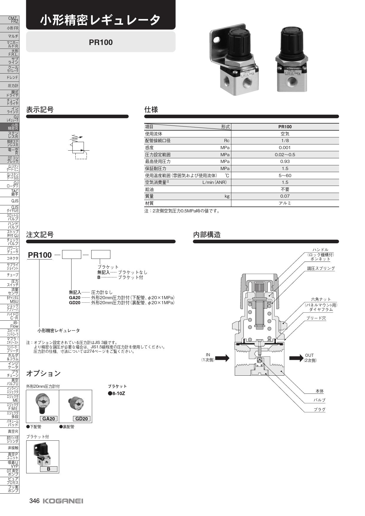マルチシリーズ,精密レギュレータ,PR100,レギュレータ