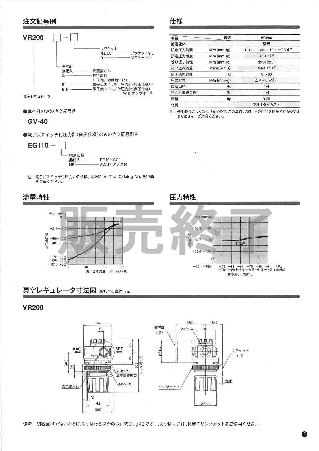 真空レギュレータ,VR200