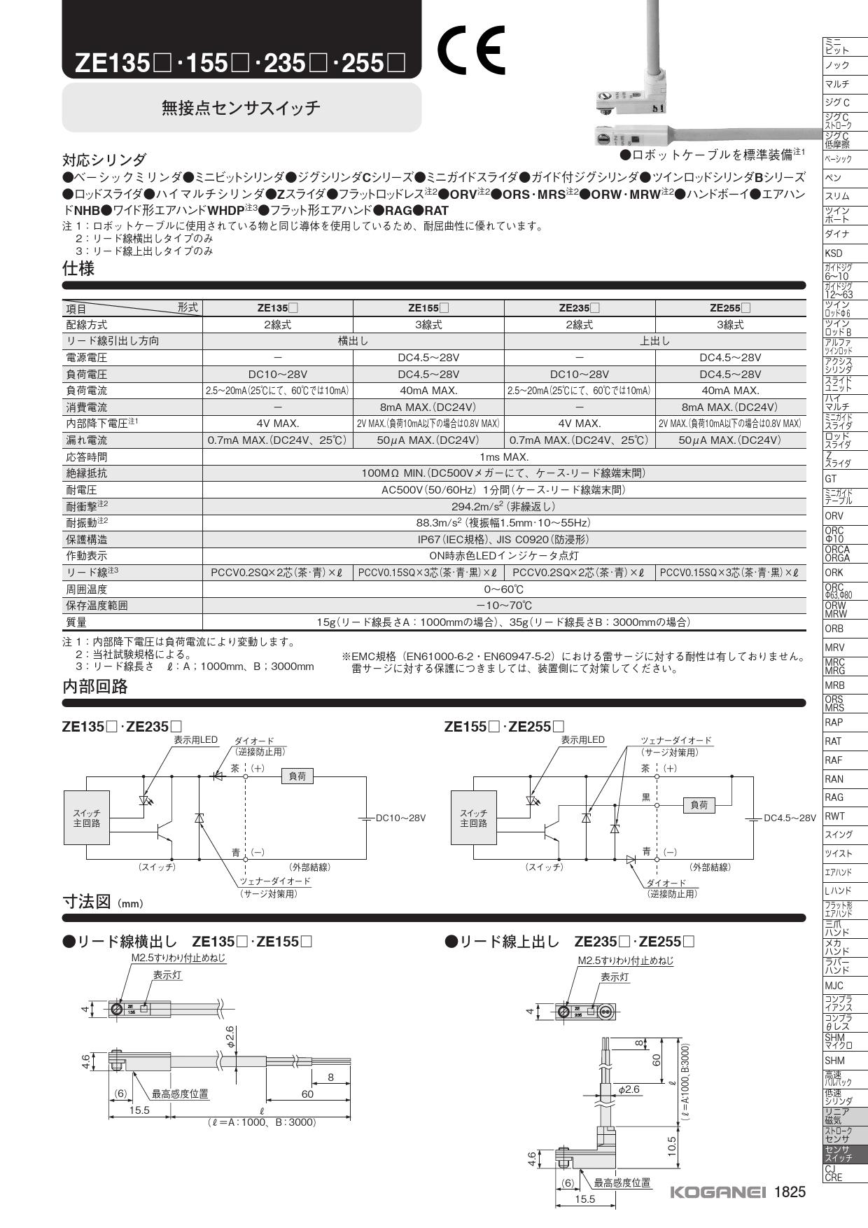 センサスイッチ,ZE135,ZE155,ZE235,ZE255,無接点,オートスイッチ