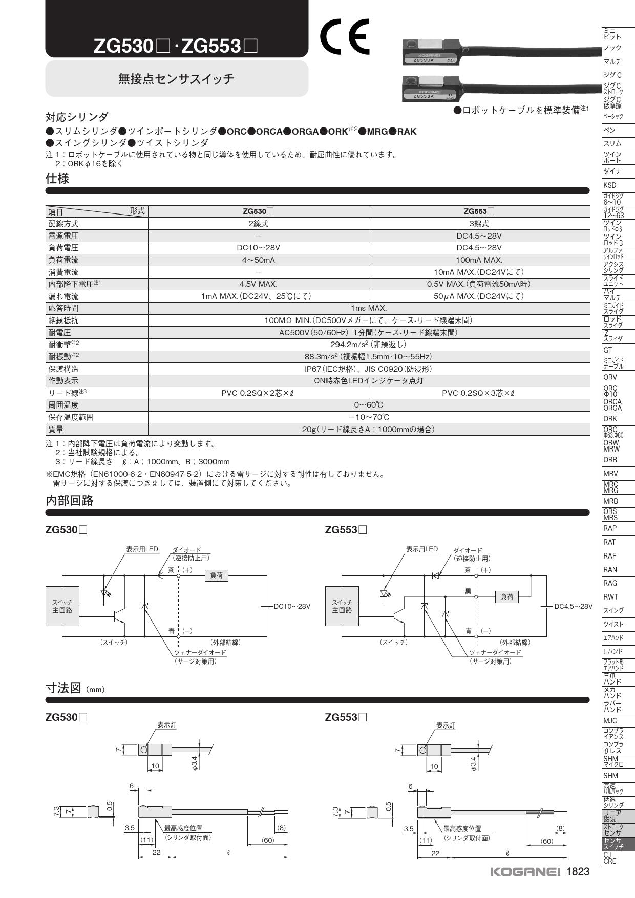 センサスイッチ,ZG530,ZG553,無接点,オートスイッチ